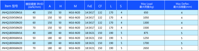 金諾JNH減振器在軸向壓力及側向壓力可達到高度的減震效果,尤其用在發電機、引擎和系統方面,減震效果非常良好,運用范圍大約在25Hz (1.500 rpm )。